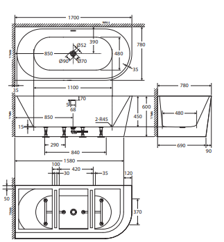 Featuring a built-in overflow and a chrome pull-out/pop-up waste, it ensures convenience and safety. The integrated steel support frame and adjustable self-supporting feet make installation simple and secure. With a generous 334-litre capacity, this bath offers comfort without compromising on style.