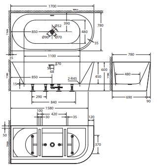 Crafted from UV-stabilised, premium sanitary-grade acrylic with Lucite MMA, this two-sided corner bath features a modern slim edge design, combining durability with sleek, contemporary style. It includes a built-in overflow and chrome pull-out/pop-up waste for functionality and convenience. The built-in steel support frame and adjustable self-supporting feet provide stability and ease of installation. With a generous 334L capacity, it’s perfect for spacious bathrooms.