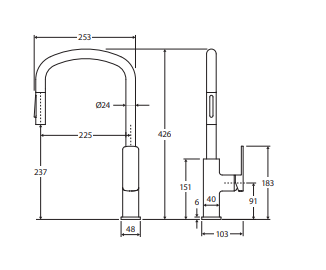 Upgrade your kitchen or laundry with this pull-out mixer in PVD brushed nickel finish, designed for style and functionality. The extended arch outlet offers generous space for washing and filling, while the pull-out nozzle extends up to 430mm for effortless cleaning.