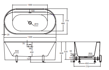 This freestanding bath is crafted from UV-stabilised, premium sanitary-grade acrylic with Lucite MMA, combining durability with contemporary elegance. Featuring a matte painted exterior and gloss white interior, it delivers a sophisticated two-tone finish. Designed with a built-in overflow, adjustable decorative legs, and a steel support frame with self-supporting feet, it ensures stability and easy installation. Compatible with a 40 mm overflow waste (not included), it offers a 204L capacity.