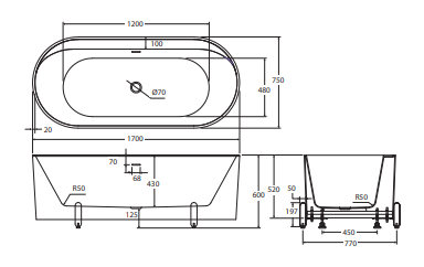 This freestanding bath is crafted from UV-stabilised, premium sanitary-grade acrylic with Lucite MMA, offering both durability and a sleek, modern design. Featuring a matte exterior and gloss white interior, it creates a sophisticated two-tone finish. With a built-in overflow, adjustable decorative legs, and a steel support frame with self-supporting feet, it ensures stable, hassle-free installation. Compatible with a 40 mm overflow waste (not included), it provides a generous 242L capacity.