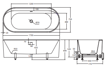 Crafted from UV-stabilised, premium sanitary-grade acrylic with Lucite MMA, this freestanding bath combines durability with contemporary style. Its matte exterior and gloss white interior create a sophisticated two-tone finish. Designed with a built-in overflow, adjustable decorative legs, and a steel support frame with self-supporting feet, it ensures stability and easy installation. Compatible with a 40 mm overflow waste (not included), it provides a generous 242L capacity.