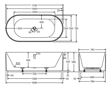 This freestanding bath features an elegant fluted design with a smooth, non-fluted perimeter at the base for easy cleaning. Crafted from UV-stabilised, premium sanitary-grade acrylic with Lucite MMA, it offers durability and a contemporary aesthetic. Equipped with a built-in overflow and chrome pop-up/pull-out waste, the bath combines style with practicality. The built-in steel support frame and adjustable self-supporting feet ensure stability and easy installation, providing a generous 280L capacity.