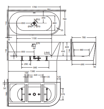 This two-sided corner bath features a modern slim edge design, crafted from UV-stabilised, premium sanitary-grade acrylic with Lucite MMA for durability and long-lasting shine. Equipped with a built-in overflow and chrome pull-out/pop-up waste, it combines practical functionality with contemporary style. The built-in steel support frame and adjustable self-supporting feet ensure stable and easy installation. With a generous 334L capacity, it is ideal for spacious bathrooms.