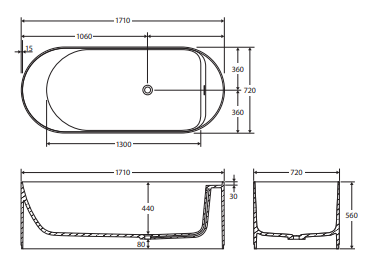 Add both style and functionality to your bathroom with this freestanding bath featuring vertical fluting around the perimeter and a convenient integrated shelf. Made from durable solid surface, it has a smooth, non-fluted base for easy cleaning. The bath includes a built-in overflow and a matching solid surface pull-out/pop-up waste (WAS78B) for seamless operation. With a 300L capacity, it delivers a spacious and luxurious bathing experience.