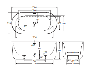 Crafted from UV-stabilised, premium sanitary-grade acrylic with Lucite MMA, this freestanding bath combines durability with a timeless modern vintage aesthetic. Featuring a built-in overflow and chrome pull-out/pop-up waste, it offers both style and practical functionality. The built-in steel support frame and adjustable self-supporting feet ensure stability and easy installation, while its 220L capacity provides a generous bathing experience.