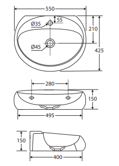 This elegant basin features an Alpine gloss white finish and is crafted from high-quality vitreous china for durability and a smooth, easy-to-clean surface. Designed with a 12 o’clock tap hole and no overflow, it offers a minimalist and contemporary aesthetic for modern bathrooms. The basin includes an oval cover plate for the waste and requires a 32 mm non-overflow waste (WAS72 only; pull-out section must be removed to allow use of the oval cover plate). Made in the UAE, this basin combines style and functionality for a sophisticated bathroom setting.