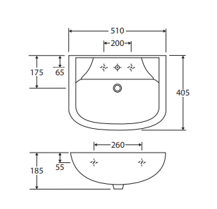 This wall-mounted basin combines style and functionality, making it perfect for bathrooms, ensuites, or powder rooms. The gloss white finish provides a clean, contemporary look, while the durable vitreous china construction ensures long-lasting performance and easy maintenance. Designed with one tap hole and an integrated overflow, it requires a 32mm waste with overflow (not included). Wall mounting bolts are supplied for secure installation, and a chrome overflow ring is available separately (OVERFLOW) for a polished finishing touch. Made in the UAE to deliver superior quality and craftsmanship.