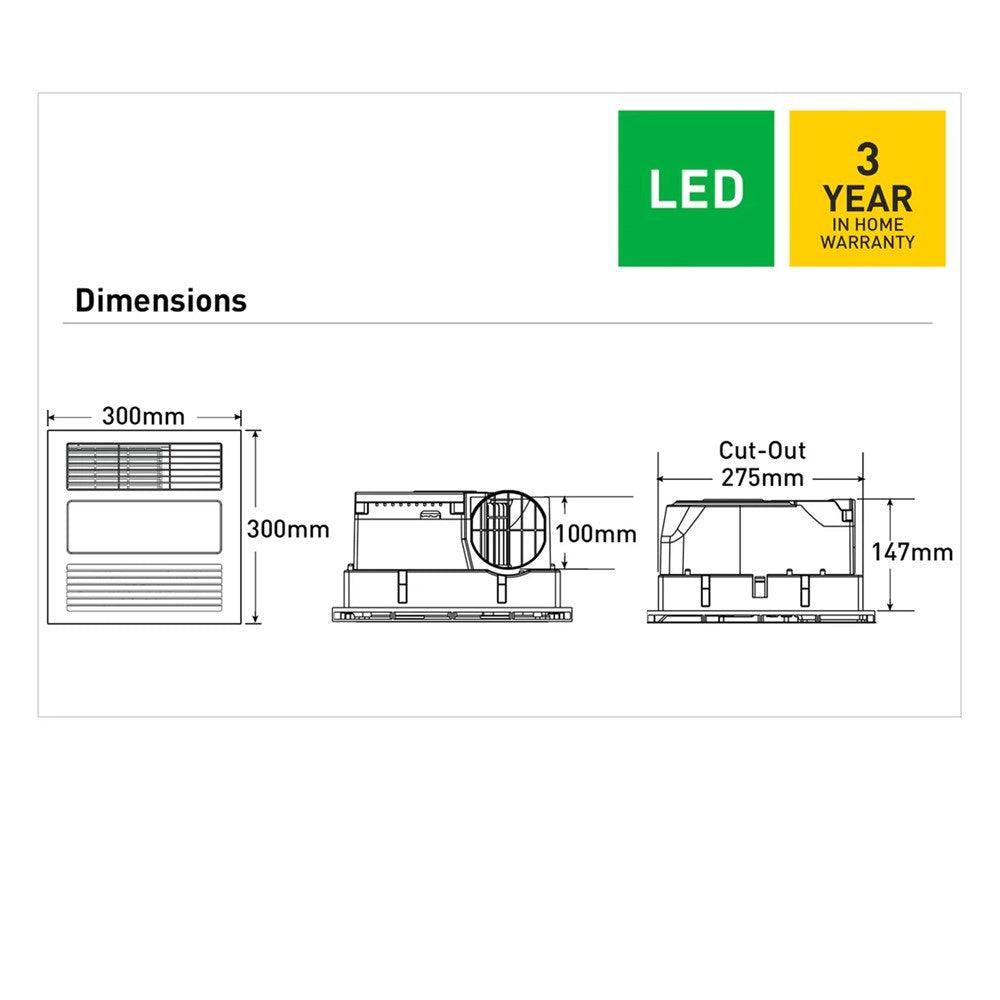 - Wall controller with 3 switches included for separate heat, light, and fan control