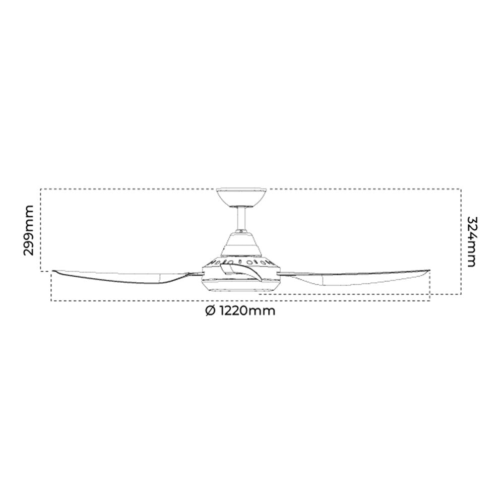 The Sanur 48" DC ceiling fan combines powerful performance with a sleek, slimline design suitable for both indoor and covered outdoor spaces. Its 4 reinforced ABS blades ensure efficient airflow while maintaining quiet operation. With a reversible motor and an 8-speed remote control, it offers customizable comfort all year round. The integrated dimmable tri-colour LED light allows you to easily adjust lighting to suit any mood or setting.