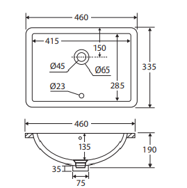 Crafted from durable vitreous china, this basin features a smooth gloss white finish that suits both modern and classic bathroom styles. The built-in overflow is positioned at the front of the inner bowl and comes complete with a chrome ring for a refined touch. Designed for practicality and long-term use, this basin requires a 32mm overflow waste (not included).