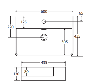 Petra 600 Above Counter Basin, 1 Tap Hole
