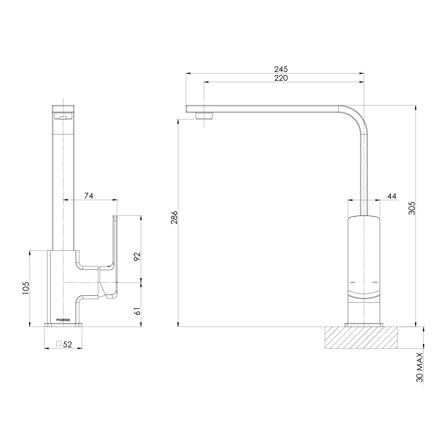 Teva Sink Mixer 200mm Squareline – 6 Star – Lead Free