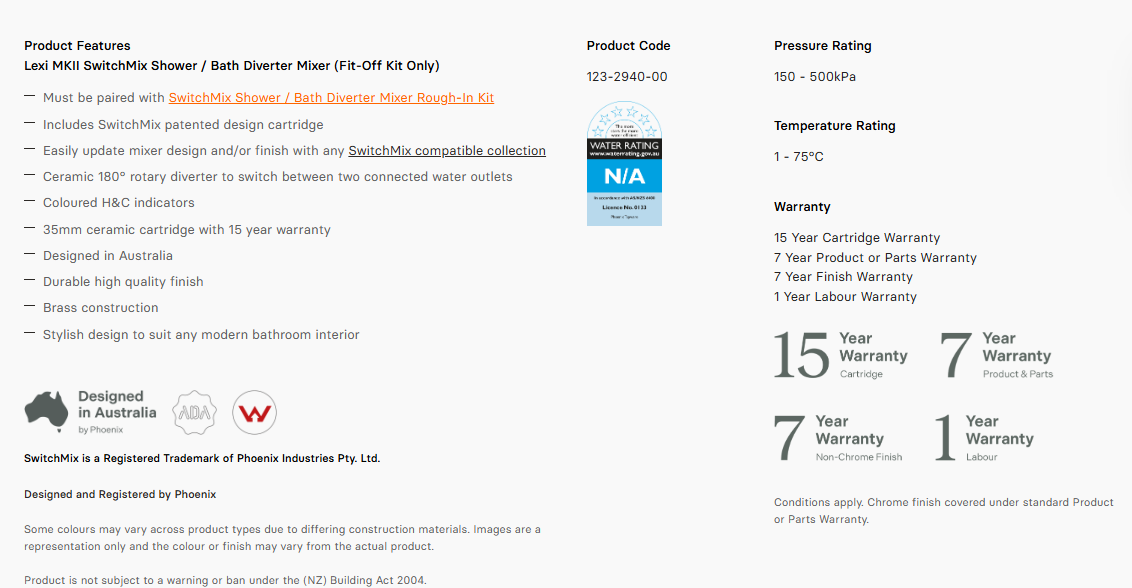 Lexi MKII SwitchMix Shower / Bath Diverter Mixer Fit-Off Kit